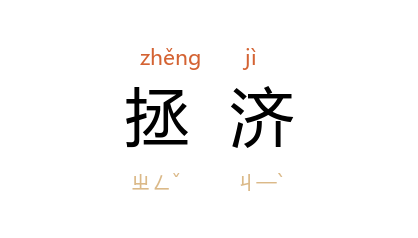 引《后汉书·律历志中》:“予末小子,託在於数终,曷以续兴,崇弘祖宗,拯济元元?”唐 司空图 《泽州灵泉院记》:“弛心则若涸其中,用之则若涌於外,皆拯济之大权也。”宋 苏轼 《再论积欠六事四事札子》:“臣知 杭州 日,预先奏乞下发运司,多糴米斛,以备来年拯济饥民。”清 纪昀 《阅微草堂笔记·滦阳消夏录五》:“老母昔蒙拯济,今救君断骨之厄也。”