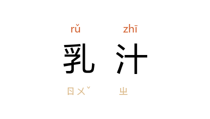 ⒈ 由乳腺分泌出的白色或略带黄色的液体,含有各种不同比例的脂肪、蛋白质、糖和无机盐。