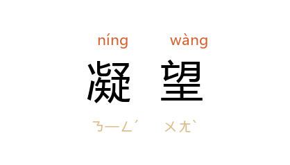 ⒈ 集中精神远望。南朝梁·江淹〈步桐台〉诗:「寂听积空意,凝望信长怀。」明·孟称舜也作「凝眺」。