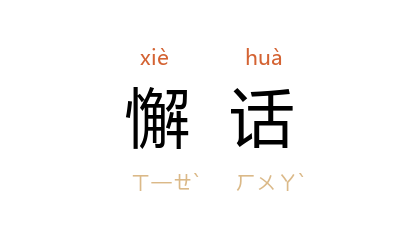 引明 单本 《蕉帕记·采真》:“正经话儿不曾讲得一句,怎么説这样懈话?”《初刻拍案惊奇》卷十:“子文 道:‘休得取笑!我是一贫如洗的秀才,怎承受得令爱起?’朝奉搊着眉道:‘如今事体急了,官人如何説此懈话?’”