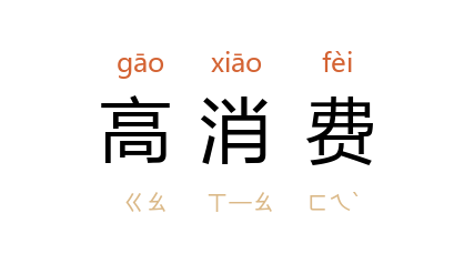 引《人民日报》(海外版)1988.8.16:“在高消费的 日本,中国 自费留学生十有九人是在勤工俭学的形式下进行顽强学习的。”《新华日报》1992.9.29:“另外物价因素、有奖销售、社会上高消费也波及了大学生们的生活本身,诱使他们走出校门。”