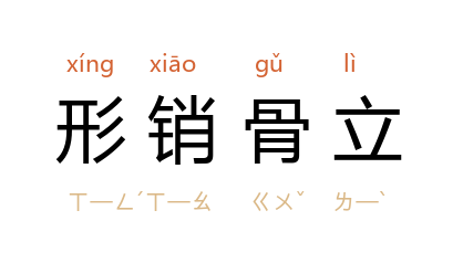 引清 蒲松龄 《聊斋志异·叶生》:“榜既放,依然鎩羽。生嗒丧而归,愧负知己,形销骨立,痴若木偶。”理由 《痴情》:“在疾病的煎熬中度过了四个月, 兰英 的健康崩溃了,她离开 长春 的时候,病体枯槁,形销骨立。”