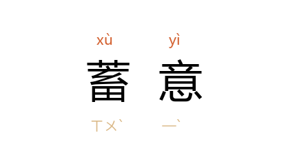 ⒈ 蕴积已久的意念。唐·开元宫人〈袍中〉诗:「蓄意添多线,含情更著绵。」也作「蓄念」。