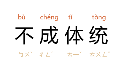 ⒈ 体统:指体制格局、规矩等。形容言语行动没有规矩,不成样子。
