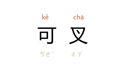 引元 康进之 《李逵负荆》第二折:“举起我那板斧来,覷着脖子上可叉。”元 无名氏 《争报恩》楔子:“被我可叉一拳,丕的打倒在地。”元 无名氏 《赚蒯通》第一折:“唤他来可擦的一刀两段,便除了后来的祸患。”