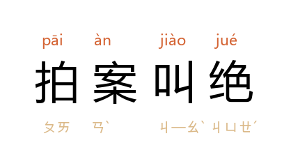 引《红楼梦·第七〇回》:「众人拍案叫绝,都说:『果然翻得好气力,自然是这首为尊。』」《儿女英雄传·第二三回》:「当下邓九公听了,先就拍案叫绝。」
