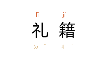 引《周礼·秋官·小行人》:“小行人,掌邦国宾客之礼籍,以待四方之使者。”郑玄 注:“礼籍,名位尊卑之书。”贾公彦 疏引 陆德明 释文:“名位尊卑,以解礼也;之书,以解籍也。”《慎子·威德》:“法制礼籍所以立公义也。”