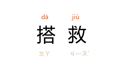 ⒈ 帮助、拯救。元·马致远也作「答救」、「救搭」。