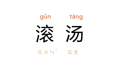 引元 无名氏 《一枝花·盼望》套曲:“谎恩情如炭火上消冰,虚疼热似滚汤中化雪。”明 徐渭 《翠乡梦》第二出:“费尽了哑佯妙方,纔成就滚汤雪煬。”《水浒传》第九回:“夜间听得那厮两个做神做鬼,把滚汤赚了你脚。”