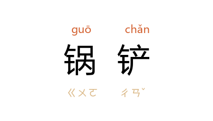引《红楼梦·第四二回》:「铁锅一口,锅铲一个。」