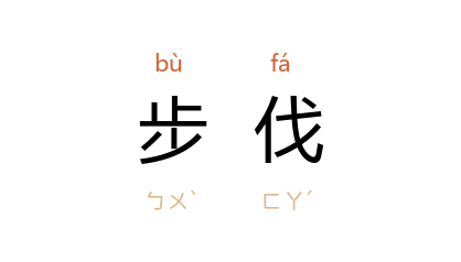 ⒈ 步,军队行进。伐,以兵器击刺。步伐泛指队伍行进的脚步。