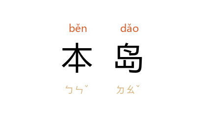 ⒈ 居处在岛屿的人称当地为「本岛」。
