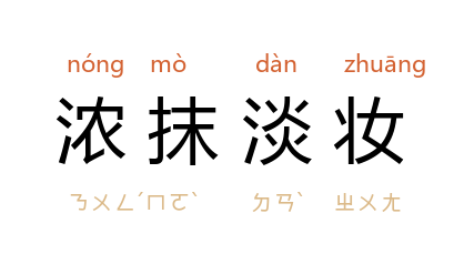 ⒈ 女子浓艳或素净的妆扮。也作「淡妆浓抹@@@浓妆淡抹」。