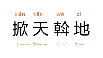 ⒈ 斡,旋转。掀天斡地指仿佛可以把天地翻转过来。比喻声势威猛浩大。宋·冯时行〈遗夔门故旧〉诗:「蜀江迸出岷山来,翻涛鼓浪成风雷。掀天斡地五千里,争赴东海相喧豗。」也作「掀天揭地」。