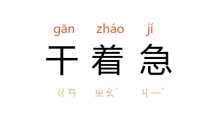引《儿女英雄传》第三一回:“这边拴着的听了,只乾着急,苦挣不脱。”巴金 《家》三十一:“从 觉慧 这里既然得不到消息,而 觉民 的条件又无法接受, 觉新 和 周氏 两人也只有干着急。”