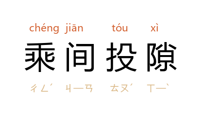 引宋·辛弃疾〈九议之一〉:「然而特怵于天下之士不乐于吾之说,故切切然议之,遂使小人乘间投隙,持一偏可喜之论以媒己私利。」《明史·卷一九一·徐文华传》:「万一防闲阔略,不幸有李园、吕不韦之徒乘间投隙,岂细故哉。」