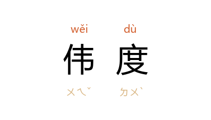 引唐 窦臮 《述书赋》:“越石 伟度,粃糠翰墨。”宋 陆游 《问候洪总领启》:“仰伟度之兼容,抚孤踪而知幸。”《续资治通鉴·宋太祖开宝四年》:“江南 君臣闻之,皆震骇,服帝伟度。”