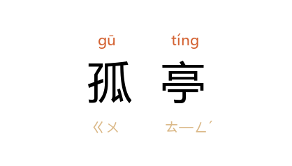 引宋 梅尧臣 《会胜院沃洲亭》诗:“孤亭一入野气深,松上藤萝篱上葛。”宋 朱熹 《再用韵题翠壁》:“孤亭一目尽天涯,俯瞰烟村八九家。”金 元好问 《横波亭》诗:“孤亭突兀插飞流,气压 元龙 百尺楼。”