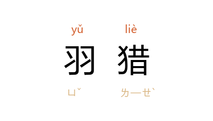 ⒈ 帝王出猎,士卒负羽箭随从,故称“羽猎”。