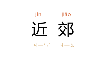 ⒊ 今指靠近城市的郊区。如 扬州 近郊。