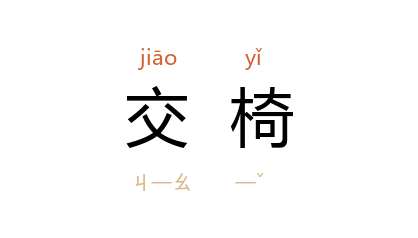 ⒈ 坐具。腿交叉,有靠背,能折迭。古时称“胡床”、“交床”,后世称“太师椅”。参阅 宋 陶穀 《清异录·逍遥座》、 张端义 《贵耳集》卷下。