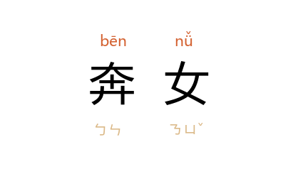 引汉 刘向 《列女传·齐宿瘤女》:“使妾不受父母之教而随大王,是奔女也。”赵令畤 《侯鲭录》卷二引 宋 徐积 《节孝集·爱爱歌序》:“然 爱爱 以小女子,顾其势终不能固执,此其所以操心危虑患深之道,不得已而为奔女之计也。”