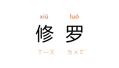 ⒈ 梵语Asura的译音,“阿修罗”的省称。意译为“不端正”或“非天”,是古 印度 神话中的一种恶神,住在海底,常与天神战斗。佛教采用其名,把它列为天龙八部之一,又列为轮回六道之一。