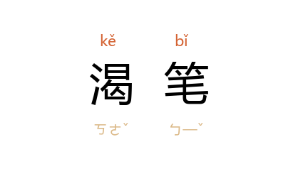 引《雅俗稽言·卷三三·字学·渴笔》:「唐徐浩书张九龄司徒告身,多渴笔,谓枯无墨也,在书法最难。」