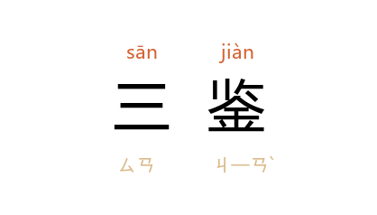 唐 刘餗 《隋唐嘉话》卷上、《旧唐书·魏徵传》“鑑”字皆作“镜”。 明 袁宗道 《挽周老师》诗之二:“国自怜三鑑,人谁续五车?”