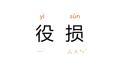 引宋·柳永〈两同心·伫立东风〉词:「忆当时酒恋花迷,役损词客。」《董西厢·卷六》:「一天愁闷怎安排,役损这情怀。」