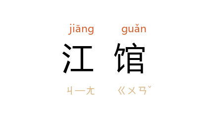 引唐 王昌龄 《送谭八之桂林》诗:“客心仍在 楚,江馆復临 湘。”唐 薛用弱 《集异记·韦宥》:“宥 奇骇,因寘于怀。行次江馆,其家室皆已维舟入亭矣。”清 黄景仁 《题马氏斋头<秋鹰图>》诗:“秋高江馆寒生稜,眼芒忽触瑶光星。”