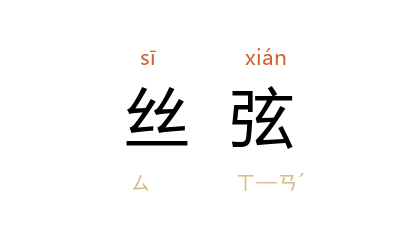 ⒈ 亦作“丝絃”。弦乐器上用以发音的丝线。亦借指弦乐器。