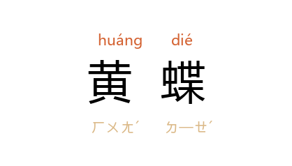 ⒈ 亦作“黄蜨”。黄色的蝴蝶。