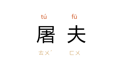 例如:「他是个杀人不眨眼的冷面屠夫。」