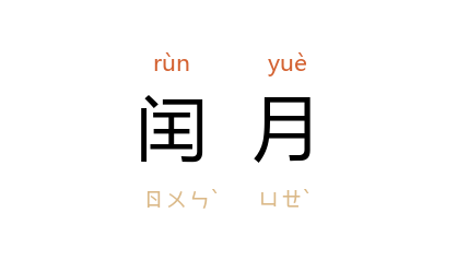 ⒈ 农历一年较回归年相差约10日21时,故须置闰,即三年闰一个月,五年闰两个月,十九年闰七个月。每逢闰年所加的一个月叫闰月。最初放在岁末,称“十三月”或“闰月”;后加在某月之后,称“闰某月”。
