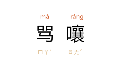 引《金瓶梅词话》第七九回:“他使性儿把袍儿上身扯了一道大口子,吃我大喓喝,和他駡嚷。”《金瓶梅词话》第九二回:“他母舅 张团练 来问他母亲借了五十两银子,復谋管事,被他喫醉了,往 张舅 门上駡嚷。”