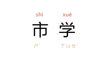 引宋 孟元老 《东京梦华录·秋社》:“市学先生预歛诸生钱作社会,以致雇倩、祗应、白席、歌唱之人。”元 锺嗣成 《醉太平》曲:“拾灰泥补砌了旧砖窰,开一箇教乞儿市学,裹一顶半新不旧乌纱帽。”《警世通言·苏知县罗衫再合》:“若只要个安身之处,敝村有个市学,倘肯相就,权住几时。”