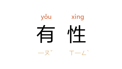 ⒈ 佛教语。有佛性。指有佛性的众生。与“无性”相对。指生物雌雄两性的特点。参见“有性生殖”、“有性杂交”。