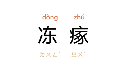 引《长阿含经》卷十九:“寒冰地狱纵广五百由旬,罪人入已,有大寒风来吹其身,举体冻瘃,皮肉堕落,苦毒辛酸,悲号叫唤,然后命终。”章炳麟 《新方言·释形体》:“浙江 谓中寒肿覈为冻瘃。”