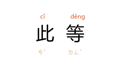 引《二刻拍案惊奇》卷九:“﹝ 朱晦翁 ﹞自家道:‘此等锄强扶弱的事,不是我,谁人肯做?’”清 李渔 《闲情偶寄·词曲上·结构》:“此等词曲,幸而出自 元 人若出我辈,则群口訕之,不识置身何地矣。”鲁迅 《二心集·<进化和退化>小引》:“我们生息于自然中,而于此等自然大法的研究,大抵未尝加意。”