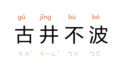 ⒈ 古井:枯竭的老井。波:波澜。枯竭的老井已不会再起波澜。比喻心境沉寂,不会因外界的影响而动感情。旧时指寡妇不思再嫁。亦作“古井无波”、“无波古井”。