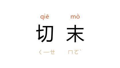 引清 王梦生 《梨园佳话》:“西京 百戏大兽陆梁,是为切末佈景之滥觴。”《儿女英雄传》第三九回:“甚么叫作宾白合套,切末排场……却是一丝不懂。”