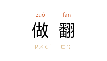 引《水浒传》第四九回:“﹝ 毛太公 ﹞又上上下下都使了钱物,早晚间要教 包节级 牢里做翻他两个,结果了性命。”《水浒传》第二八回:“当下 张青 对 武松 説道:‘不是小人心歹,比及都头去牢城营里受苦,不若就这里把两个公人做翻,且只在小人家里过几时。’”