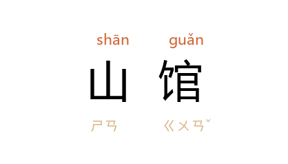引唐 李郢 《送刘谷》诗:“邮亭已送征车发,山馆谁将候火迎。”宋 柳永 《临江仙引》词:“况绣幃人静,更山馆春寒。今宵怎向漏永,顿成两处孤眠。”