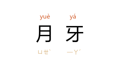 ⒉ 新月形的物体。元·杨维桢〈题芭蕉美人图〉诗:「髻云浅露月牙弯,独立西风意自闲。」也作「月芽儿」。