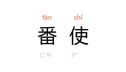 引宋 王安石 《白沟行》:“白沟河 边番塞地,送迎番使年年事。”《警世通言·李谪仙醉草吓蛮书》:“次日阁门舍人,接得番使国书一道。”