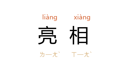 英语to strike a pose (Chinese opera), (fig.) to make a public appearance, to come out in public (revealing one's true personality, opinions etc), (of a product) to appear on the market or at a trade show etc