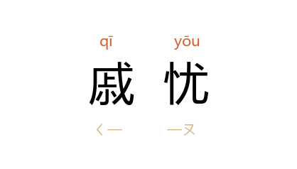 引《左传·僖公十五年》:“晋 人慼忧以重我,天地以要我。”忧伤。 宋 欧阳修 《国学试策》之二:“戚忧未弭, 子夏 不能成声;感慨形言, 孟尝 所以抆泣。”宋 陈亮 《祭姨母周夫人黄氏文》:“亮 自幼时固已识我先妣之戚忧,常惧力之不足以任其后也。”