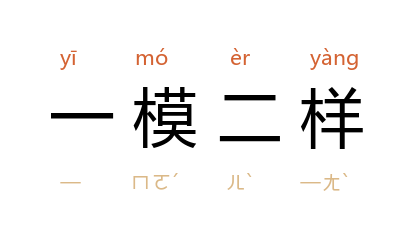 引《初刻拍案惊奇》卷十五:“又或有将金银珠宝首饰来解的,他看得金子有十分成数便一模二样,暗地里打造来换了。”《二刻拍案惊奇》卷九:“适纔礼物里边,有一件压釵的东西,也是一个玉蟾蜍,与前日 凤官人 与姐姐的一模二样。”