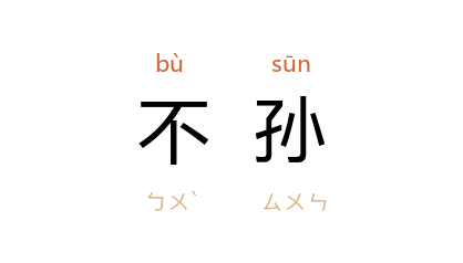 引《论语·阳货》:“恶不孙以为勇者,恶訐以为直者。”孙,一本作“逊”。 邢昺 疏:“孙,顺也。”《大戴礼记·主言》:“弟子知其不孙也。”王聘珍 解诂:“孙,恭顺也。”明 刘基 《郁离子·道术》:“上罔下则不亲,下罔上则不孙。”